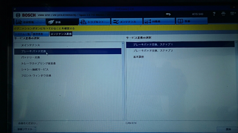 フォルクスワーゲン ティグアンのリヤブレーキパッド交換入庫しました。電気式のサイドブレーキの為にコンピューターをつながないとダメなんです。