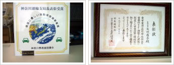 神奈川県陸運支局長表彰受賞/「環境整備に取り組んでいる」と表彰をいただきました。